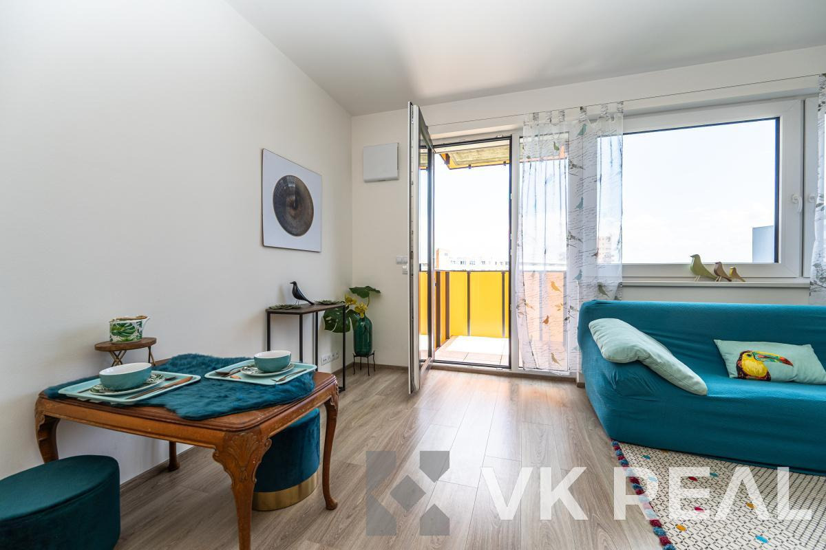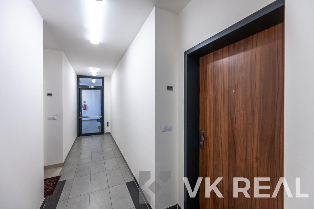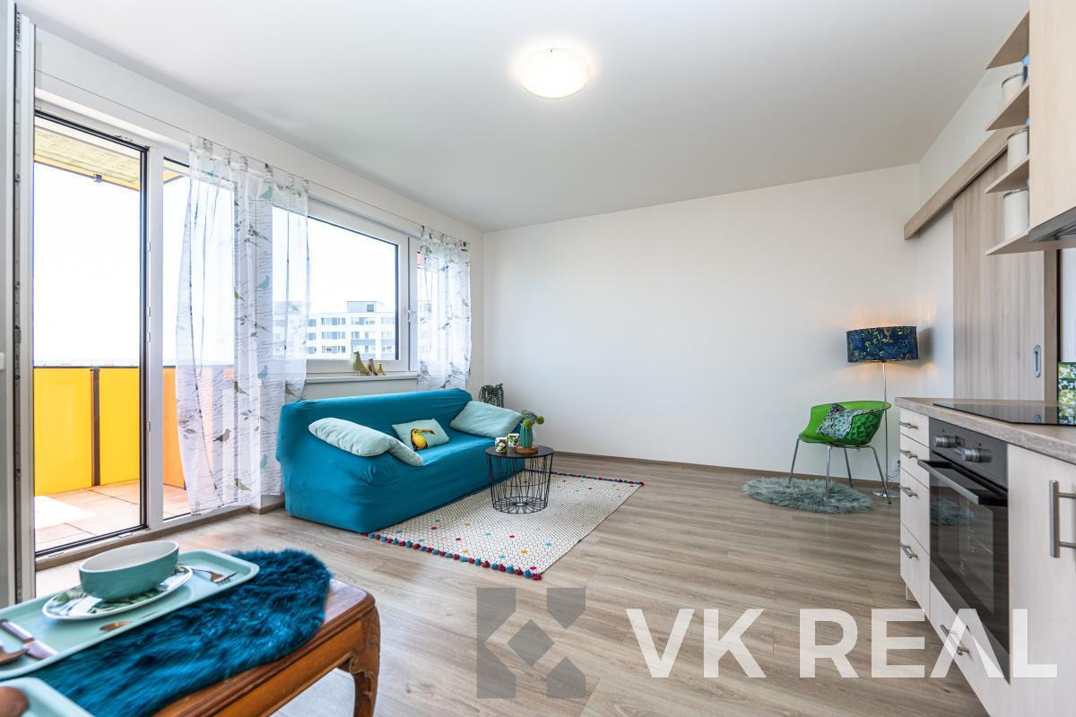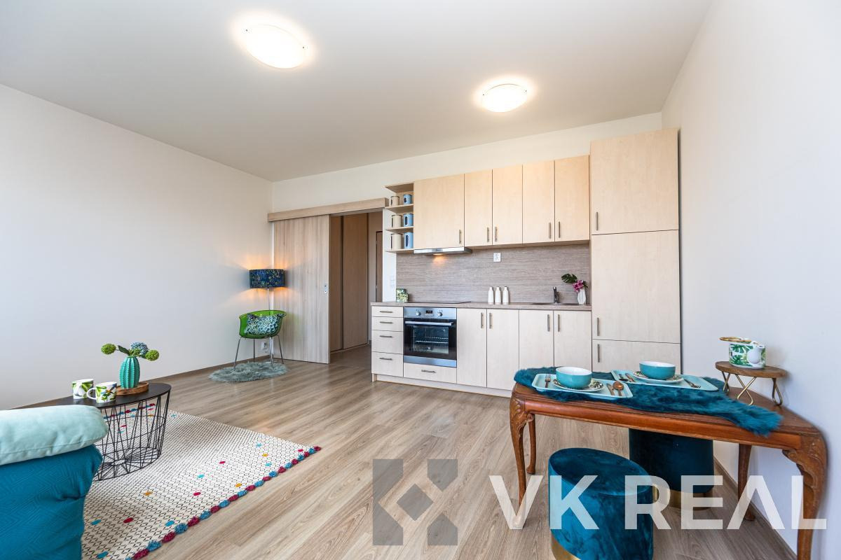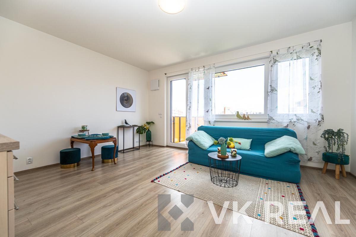 Nabízíme k prodeji moderní a světlý byt 1+kk s balkónem o celkové podlahové ploše 32m2 (vč. sklepa), situovaný ve 4.NP novostavby z roku 2018 v klidné části Prahy - Horních Měcholupech.