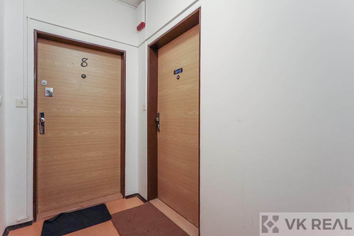 Vstup do bytu vede přes malou uzamykatelnou chodbičku sdílenou pouze třemi byty.