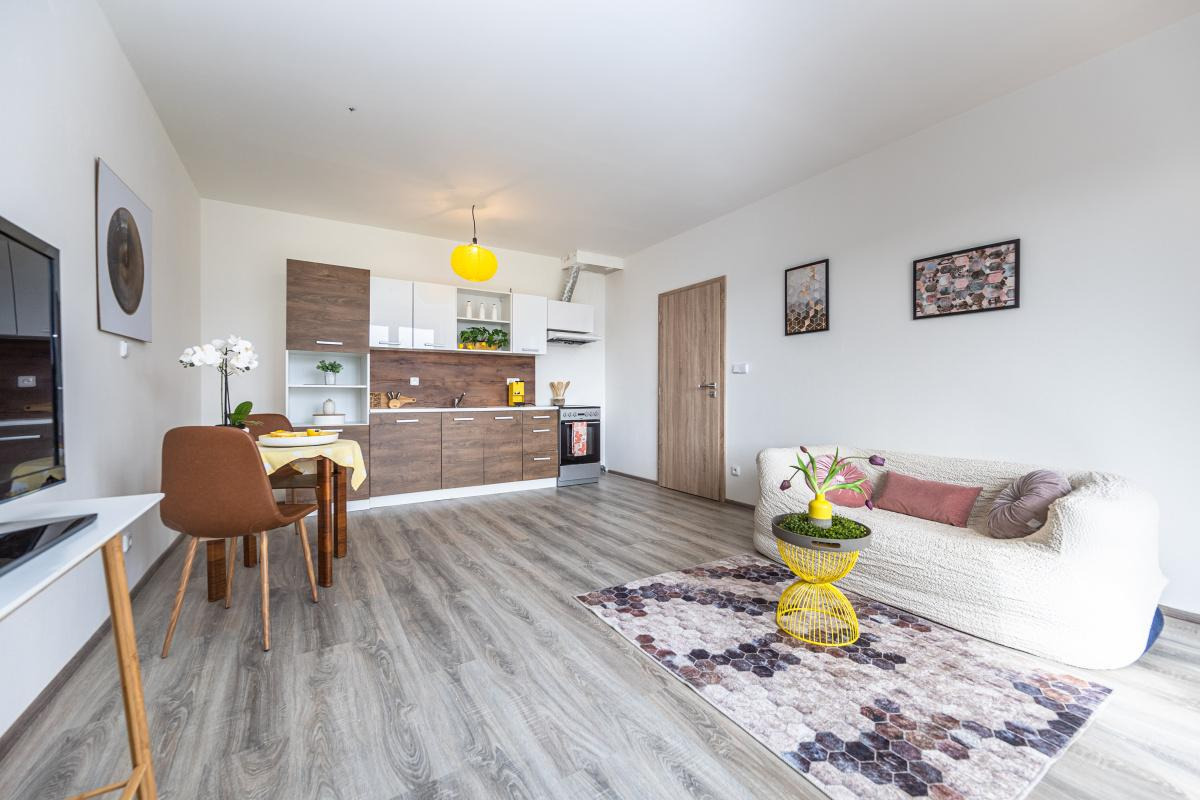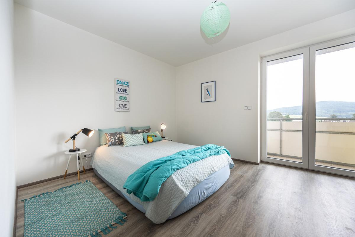 Byt je optimálně orientován všemi obytnými místnostmi na severovýchod, přičemž oba pokoje disponují svým vlastním vstupem na prostorný balkon, kde si můžete popřát ranní kávu za východu slunce.