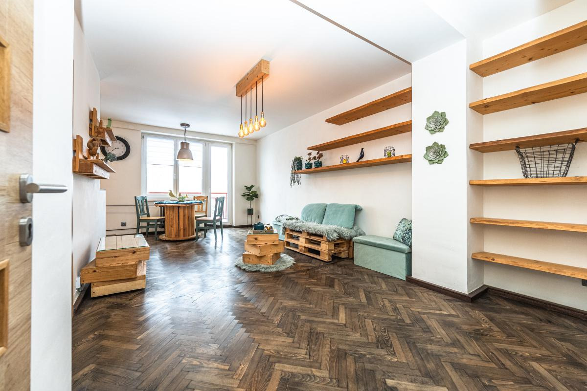 Byt je po kompletní rekonstrukci bez nutnosti dalších investic. Podlahy tvoří v obývacím pokoji a v ložnici zrenovované parkety, v chodbě a v kuchyni je položena dřevěná podlaha. Byt je částečně zařízený a k němu náleží sklep v suterénu domu o výměře cca 3,4m2.