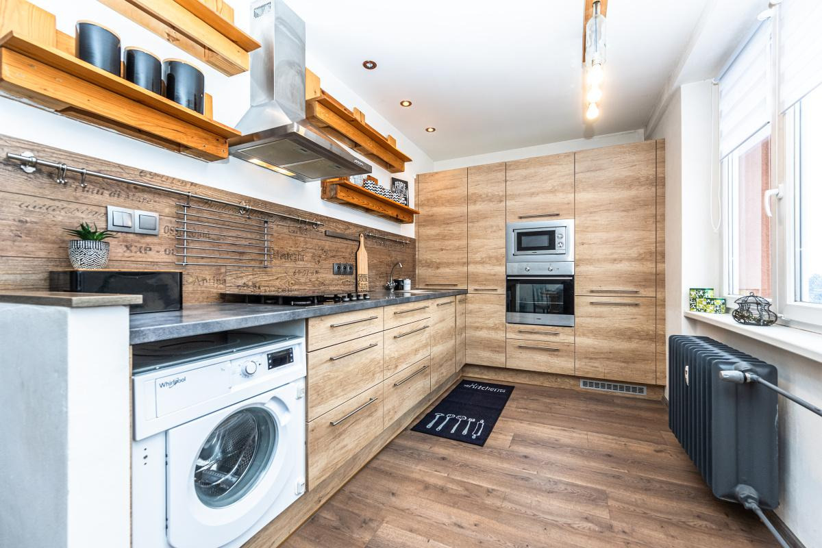 - obývací pokoj s kuchyňským koutem včetně spotřebičů (bez myčky)