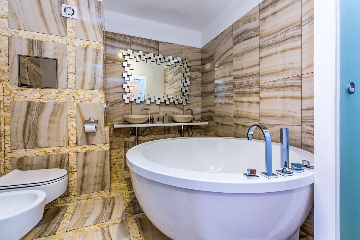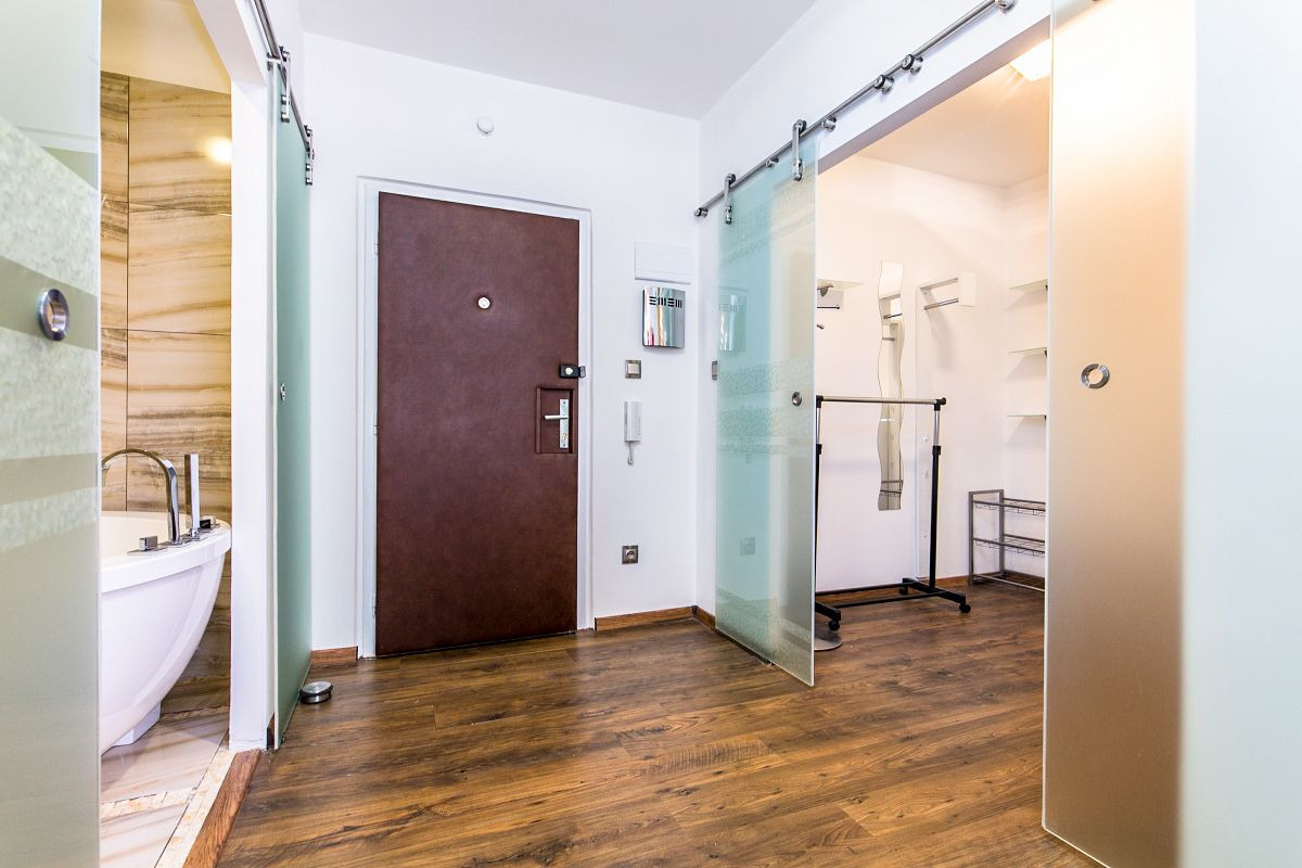 Byt je po rekonstrukci - v obytných místnostech a předsíni jsou plovoucí podlahy. Kuchyňská linka Hanák, značkové vybavení Gaggenau. V koupelně se nachází mramorová umývadla a designová vana. Podlahové vytápění. V šatně je umístěna pračka.