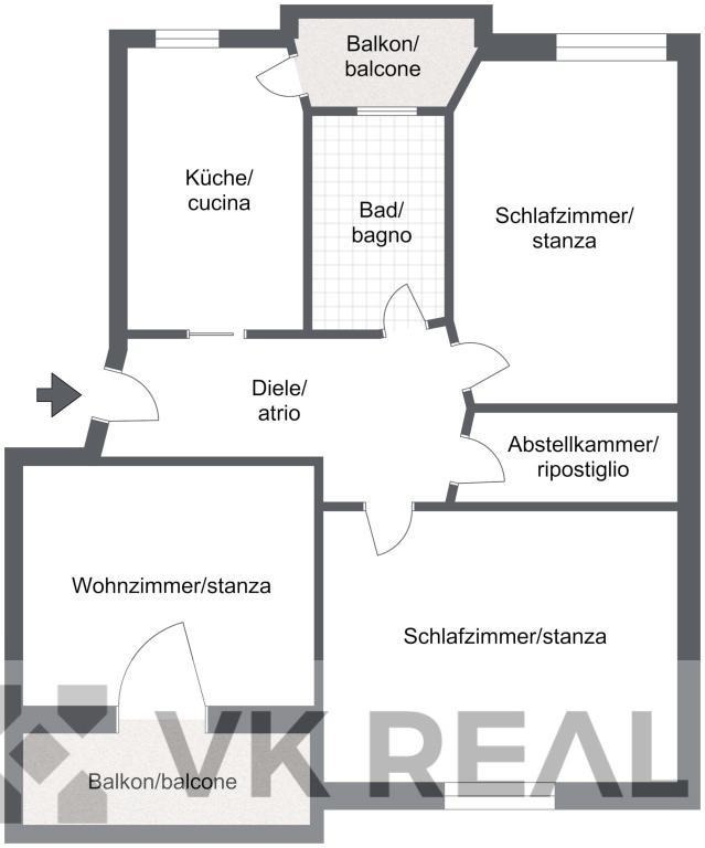 Na prodej nabízíme prakticky řešený třípokojový byt na náměstí Largo A. Rosmini v Meranu.