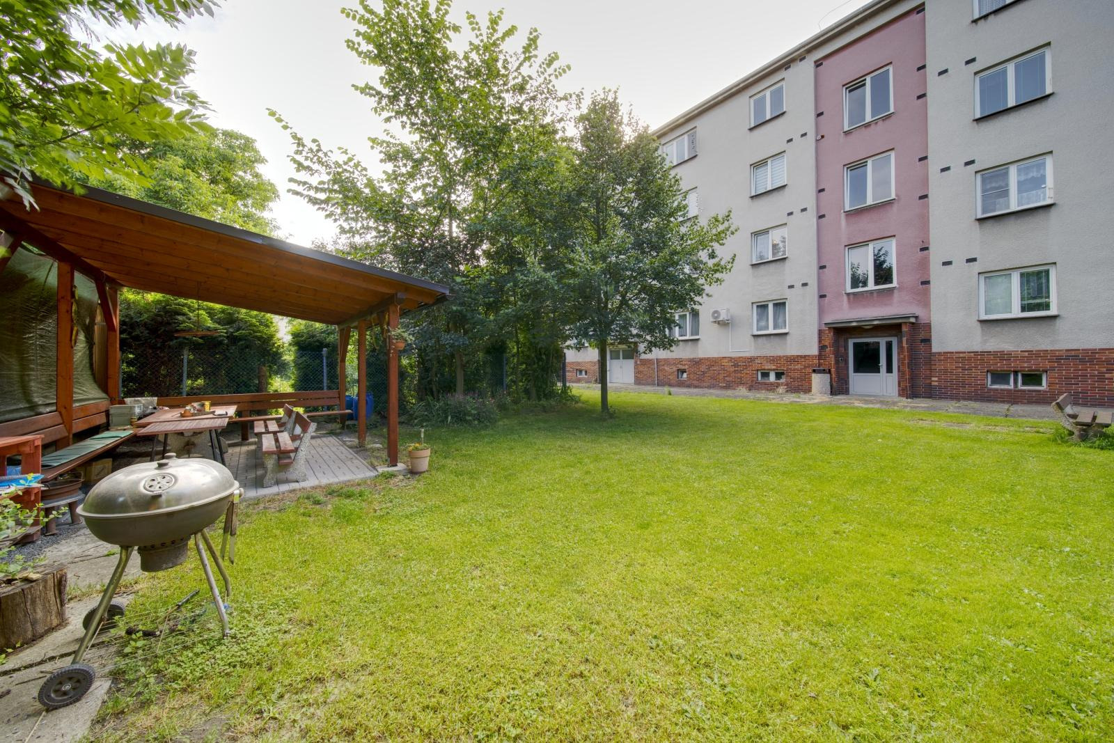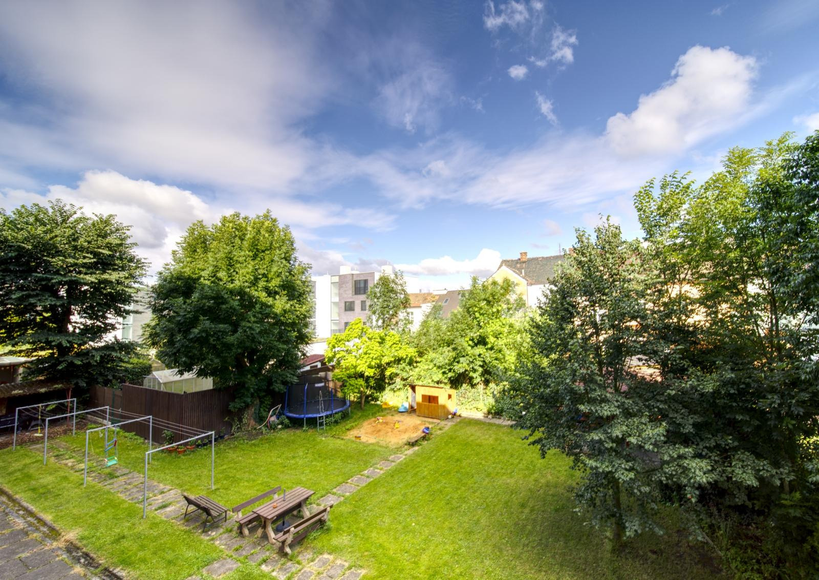 Velmi vhodné pro rodinu s dětmi - k dispozici je udržovaná zahrada se stolem a lavičkami ve vnitrobloku o ploše 681 m2 na kterou je vidět z oken v obývacím pokoji i kuchyně!