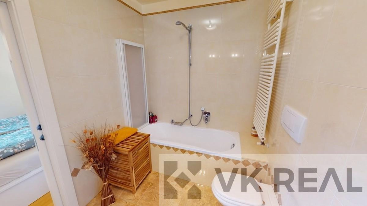 Nemovitost disponuje dvěma ložnicemi, které lze využít nejen jako klasické spací pokoje, ale také jako pracovnu nebo dětský pokoj. K dispozici jsou dvě koupelny jedna vybavená vanou, druhá sprchovým koutem.