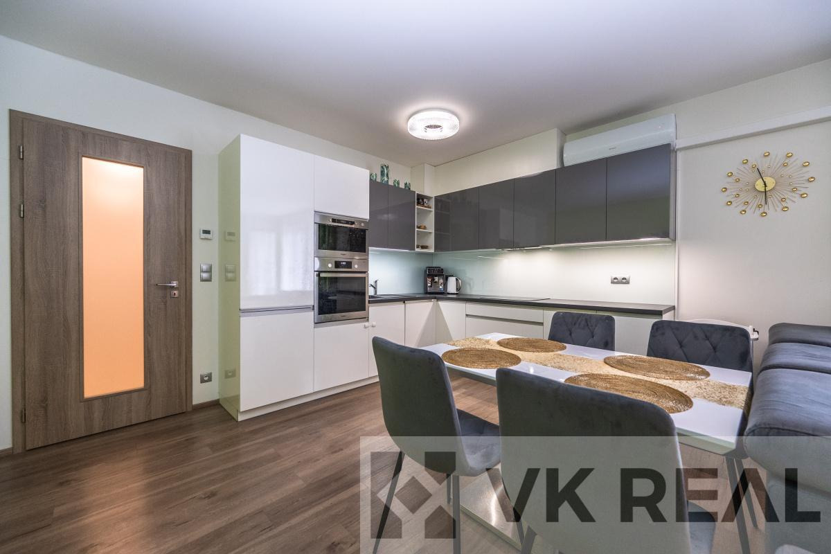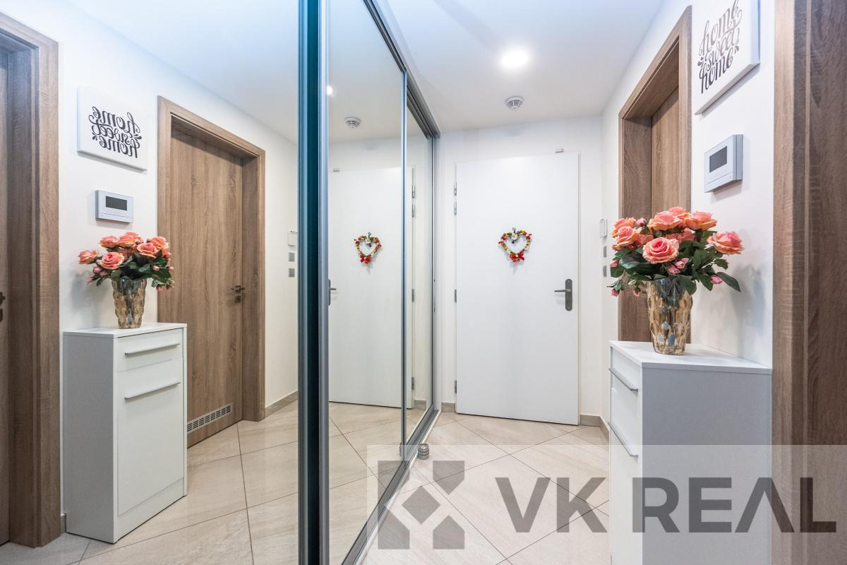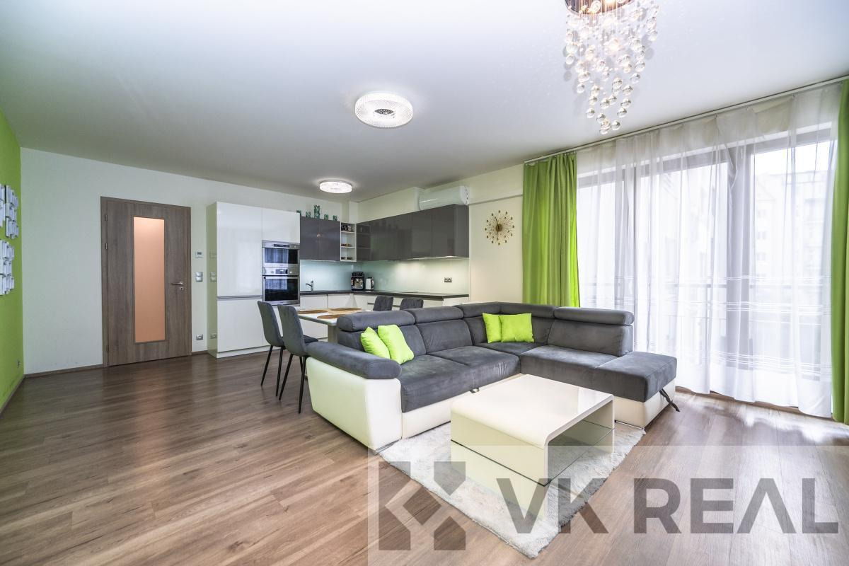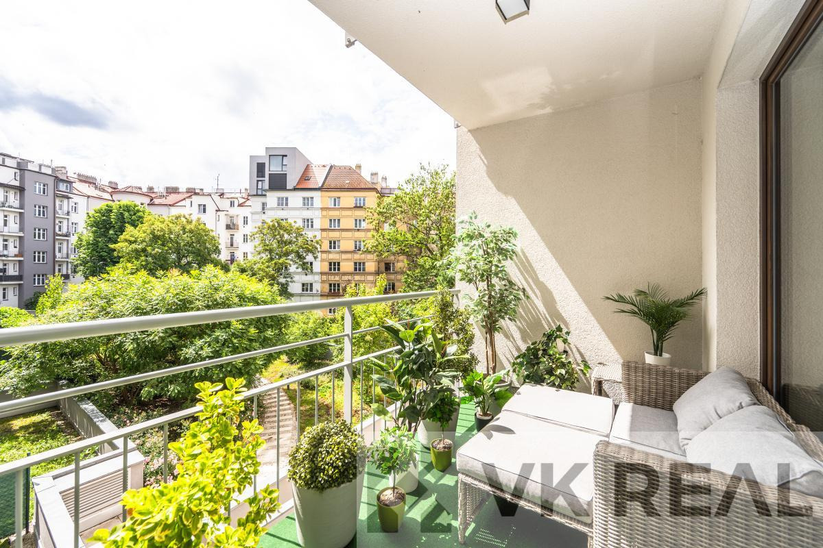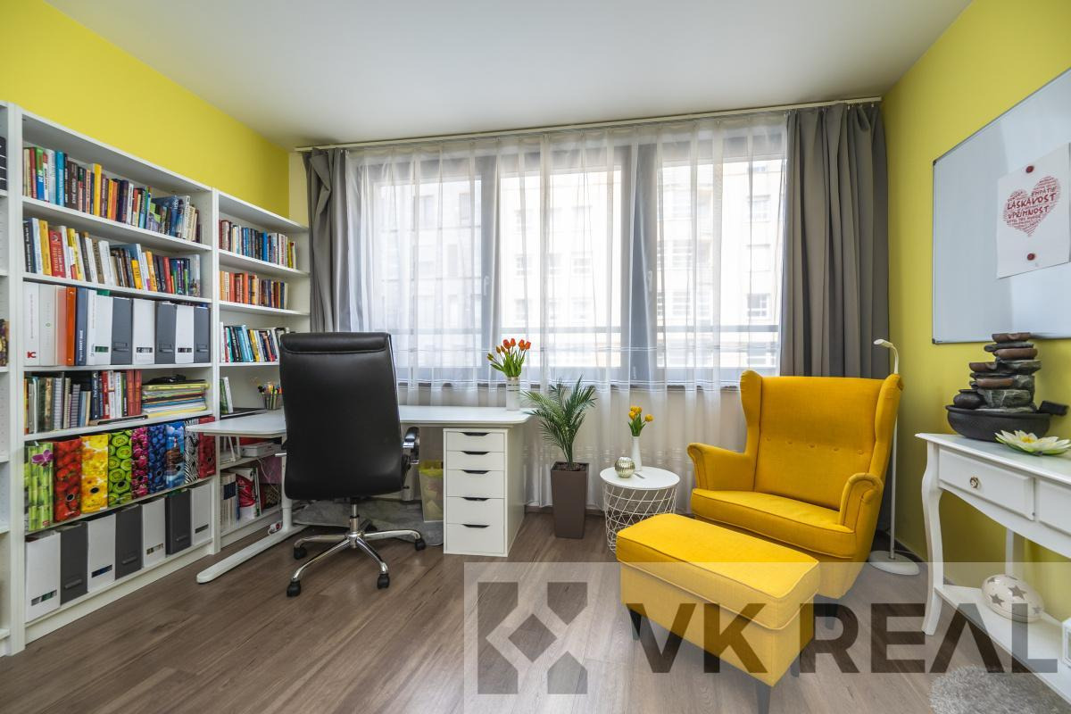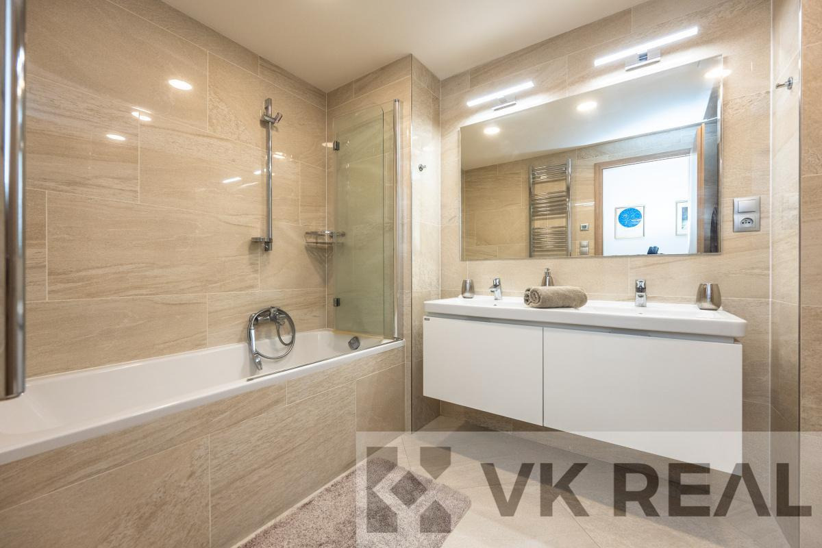 Stylový domov v rytmu města - prodej bytu 3+kk s pracovnou, šatnou, lodžií, sklepem a samostatnou garáží v novostavbě v srdci Vysočan