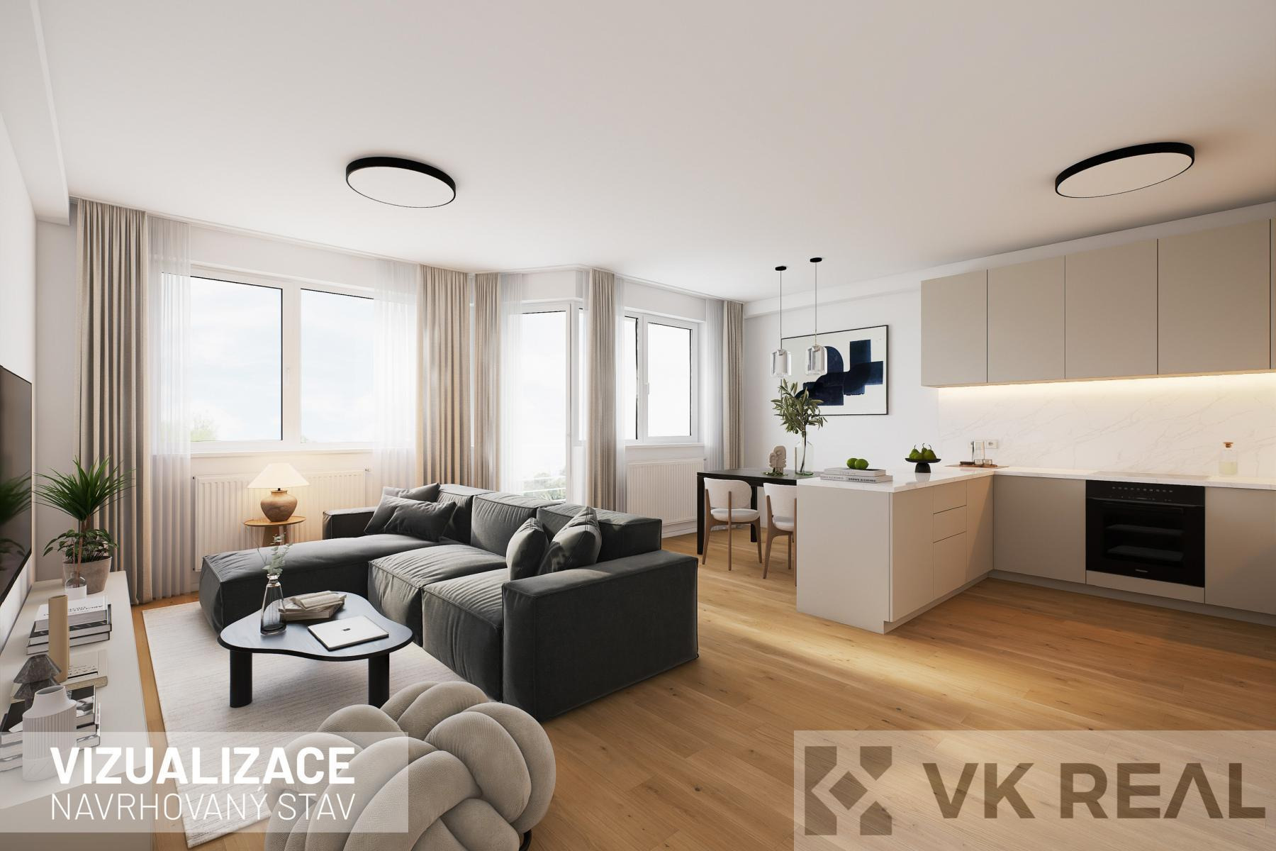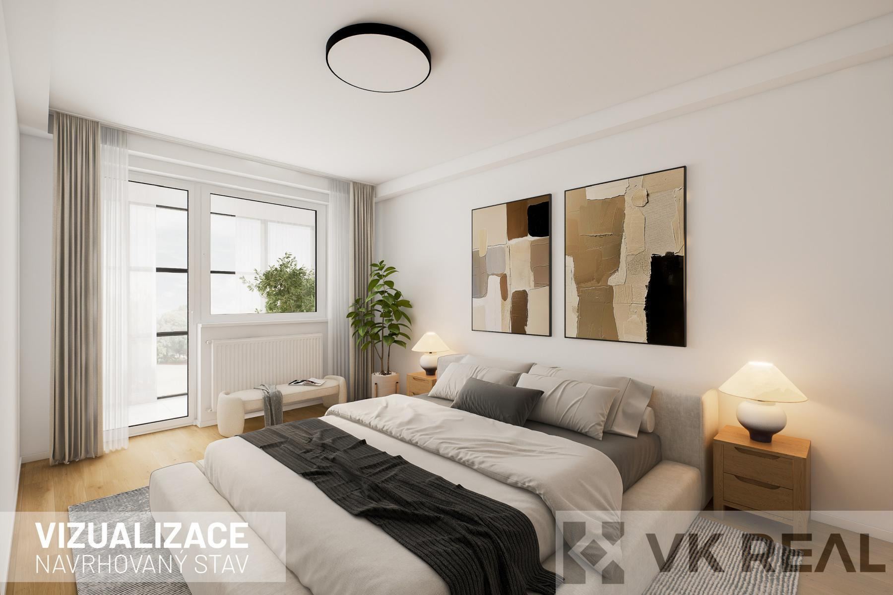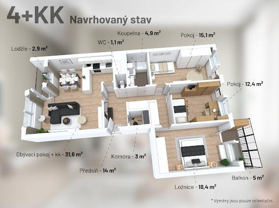 Byt je před rekonstrukcí, nicméně disponuje např. zánovním kondenzačním plynovým kotlem a zánovními okny. Pro inspiraci přikládáme několik vizualizací s náměty, jak by mohl být po rekonstrukci vypadat.