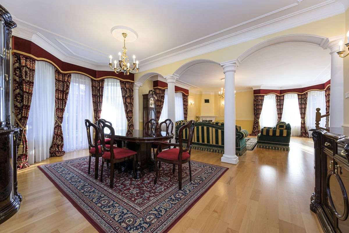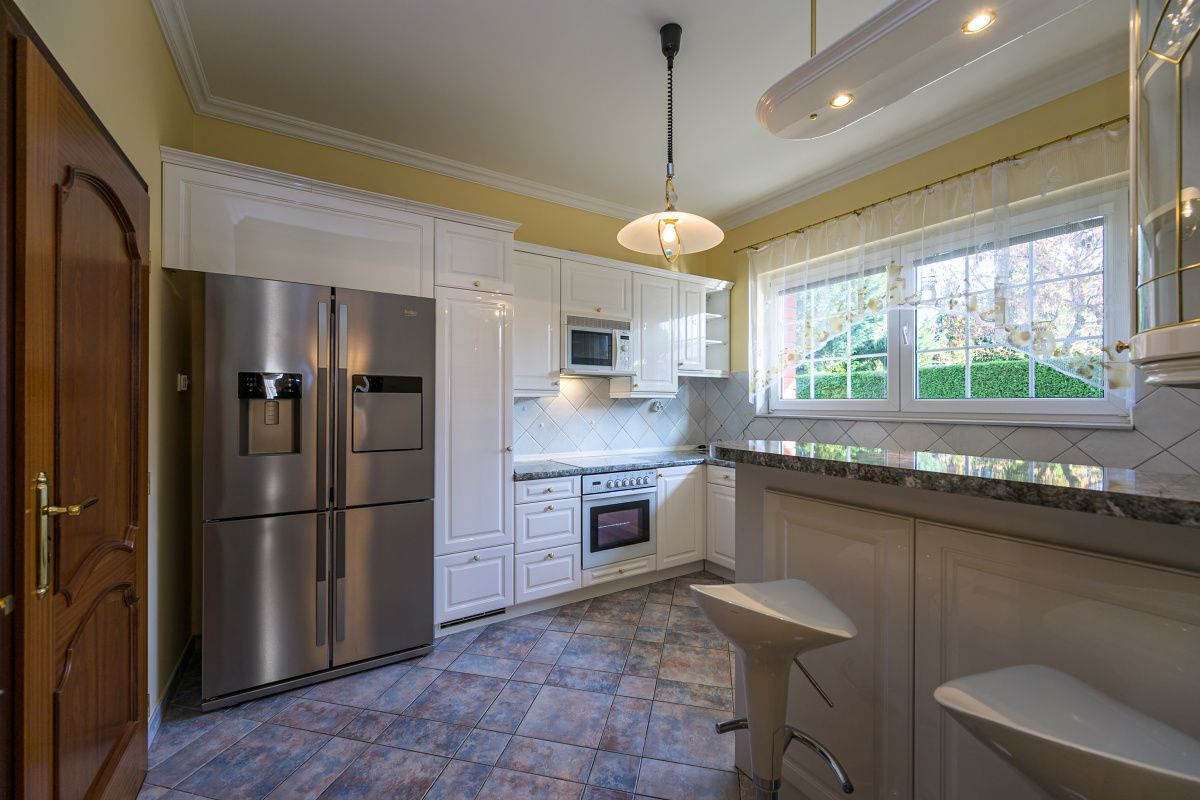 Přízemí je vybaveno reprezentativním klasickým italským nábytkem a ostatním vybavením v zámeckém stylu, které je součástí prodeje. Jídelna je podepřena sloupovím, které přirozeně odděluje velkorysou obytnou část místnosti s rohovým krbem, Arkýře nejen pohledově zdobí celý dům, ale vytváří i příjemné zvětšení a prosvětlení vnitřního prostoru. Celá vila je stylově vyštukována zdobenými vlysy, rohovými pilastry, výstupy apod. Podlahové topení v místnostech s položenou rustikální dlažbou, dubová dřevěná podlaha v obytných místnostech, dýhové dveře, nová klimatizace v místnostech v horním podlaží, elektronický zabezpečovací systém a další nadstandardní prvky splňují veškerý komfort potřebný k příjemnému bydlení.