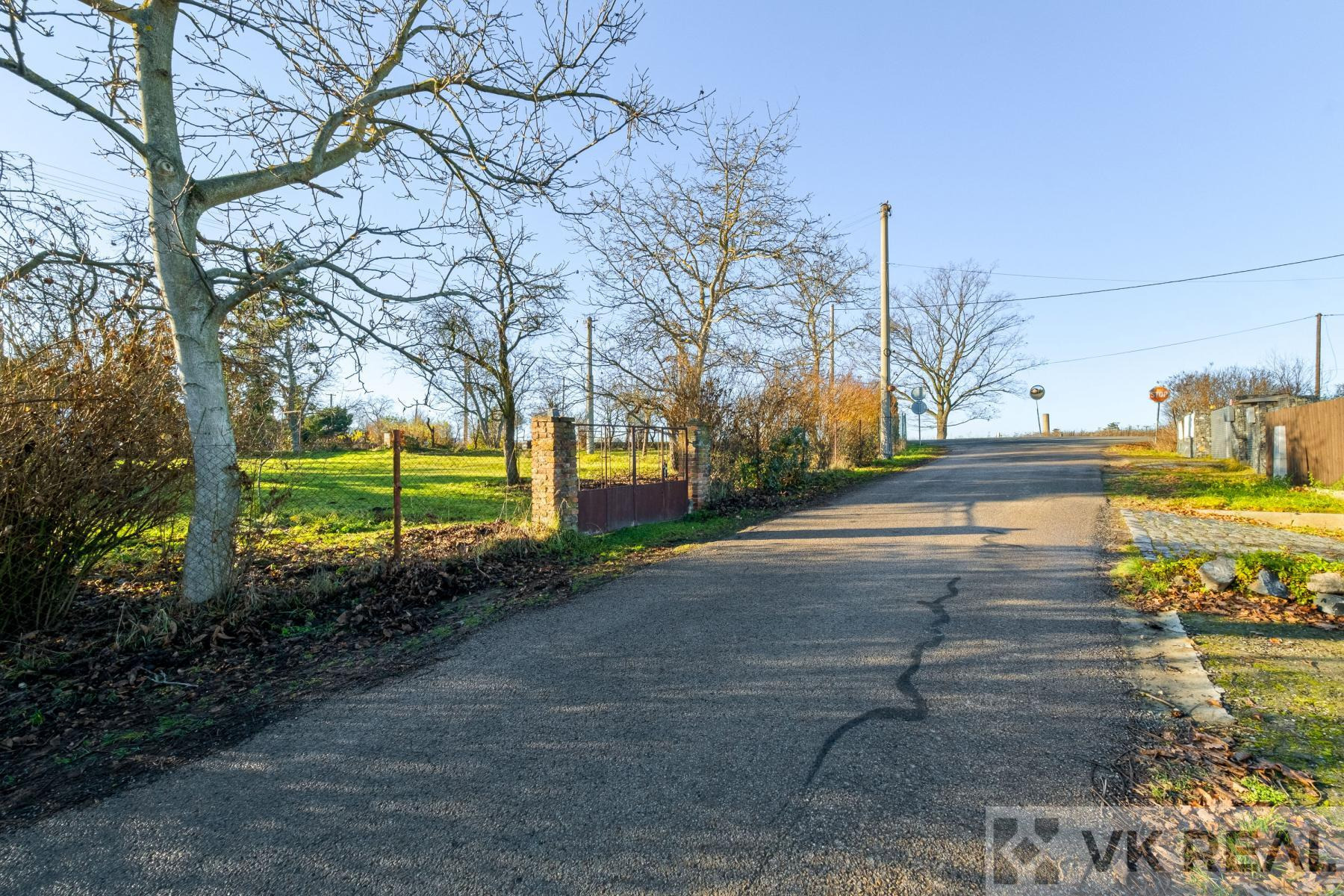 Co se týče inženýrských sítí, na pozemek je přiveden elektrický proud. Obecní vodovod se nachází přes silnici, tedy je potřeba počítat s protlakem pod silnicí na vzdálenost asi 15 až 20 metrů k hranici pozemku. Kanalizace je zhruba 150 metrů od pozemku, takže je pravděpodobně lepší řešit odpadní vody jímkou nebo vlastní čistírnou.
