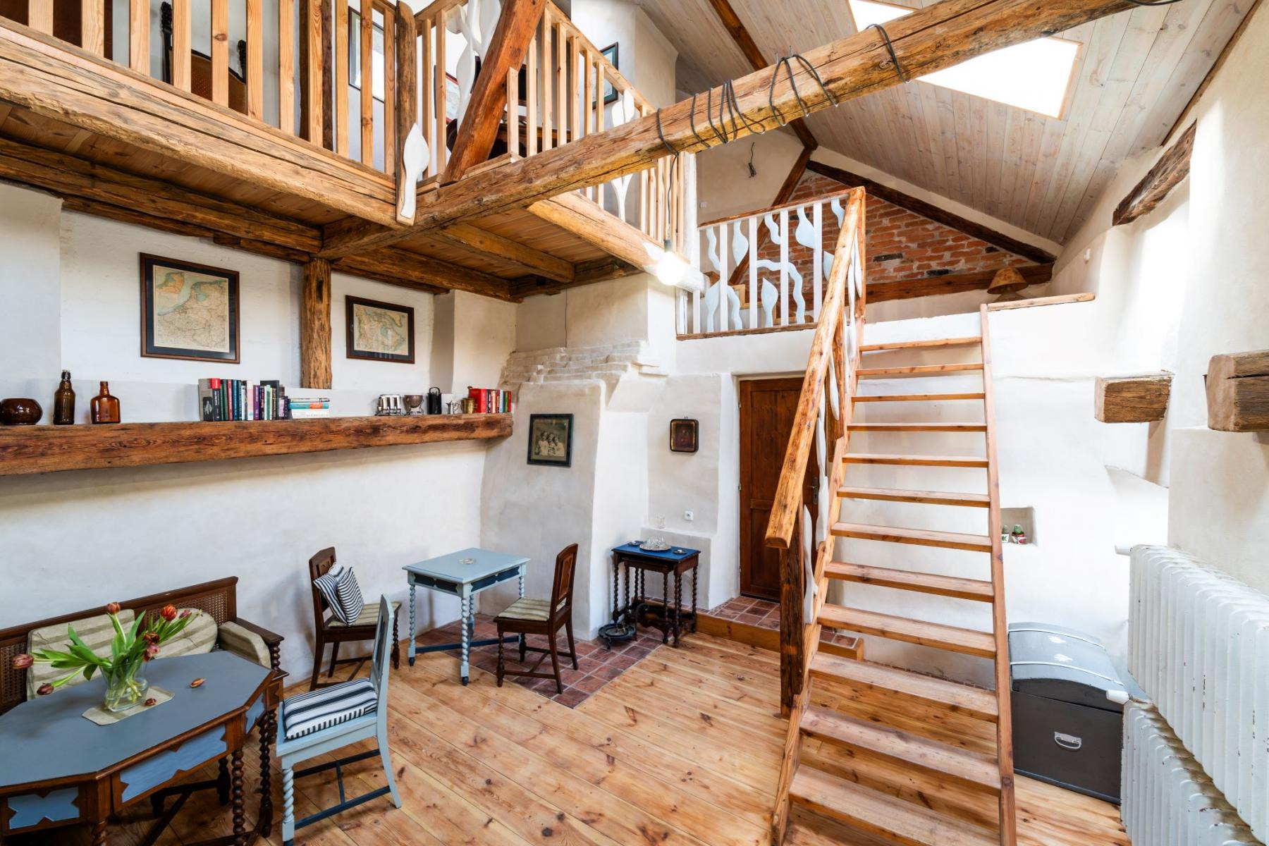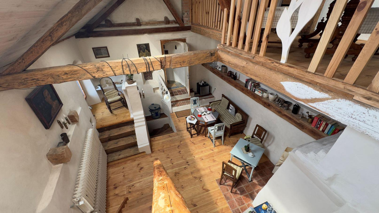 Jedná se o historický objekt původně gotický statek z 15. století, který prošel v posledních letech rozsáhlou a citlivou rekonstrukcí. Hlavní budova nabízí cca 255 m obytné plochy. Dispozice zahrnuje byt 3+1 s terasou (cca 100 m), tři samostatné apartmány (41 m, 26 m a 20 m), ateliér (40 m), halu, kotelnu a sklepy. Možnost dalšího rozšíření obytné části nabízí půda přístupná z pavlače vhodná pro mezonet nebo nové apartmány.