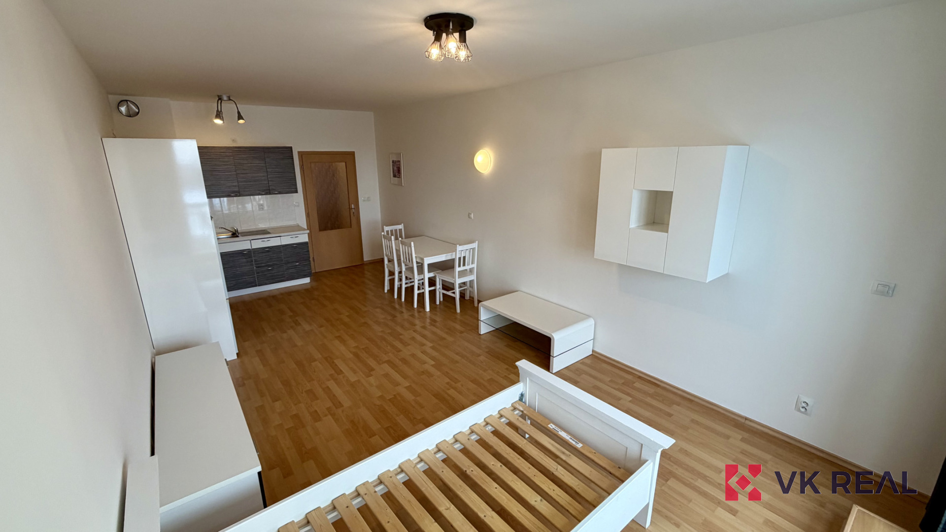 VK Real vám exkluzivně nabízí k dlouhodobému pronájmu byt 1+kk, 38 m2, s balkonem a sklepem, umístěný v posledním patře bytového domu z roku 2009. Byt se skládá z velkého pokoje (cca 24 m2) s kuchyňským koutem, ze kterého je výstup na balkon. Dále z předsíně, koupelny s WC. V suterénu domu se nachází sklep (cca 3 m2). Okna jsou orientována na jihozápad.