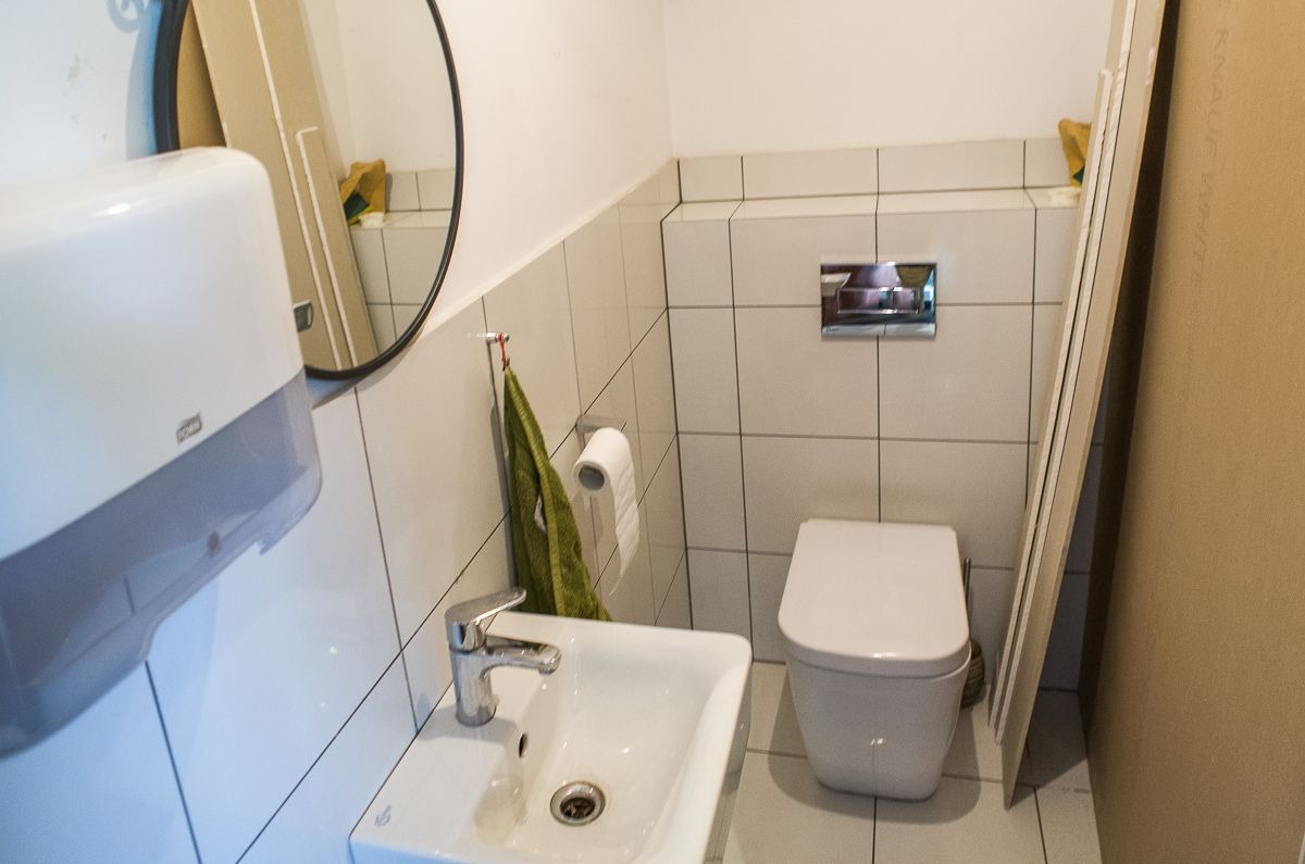 Hlavní prostor (115 m2) sestává z jedné místnosti osazené třemi velkými výlohami a prosklenými vstupními dveřmi, lze ho dle potřeby rozdělit na jednotlivé zóny. Na něj navazuje malé zázemí, skládek a příslušenství (5 m2).