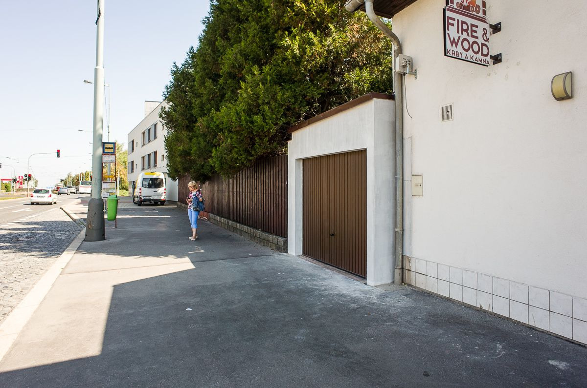 Součástí pronájmu je i garáž (11,60 m2), lze jí využít i jako sklad. Vjezd je přímo z ulice garážovými vraty vlevo od obchodu.