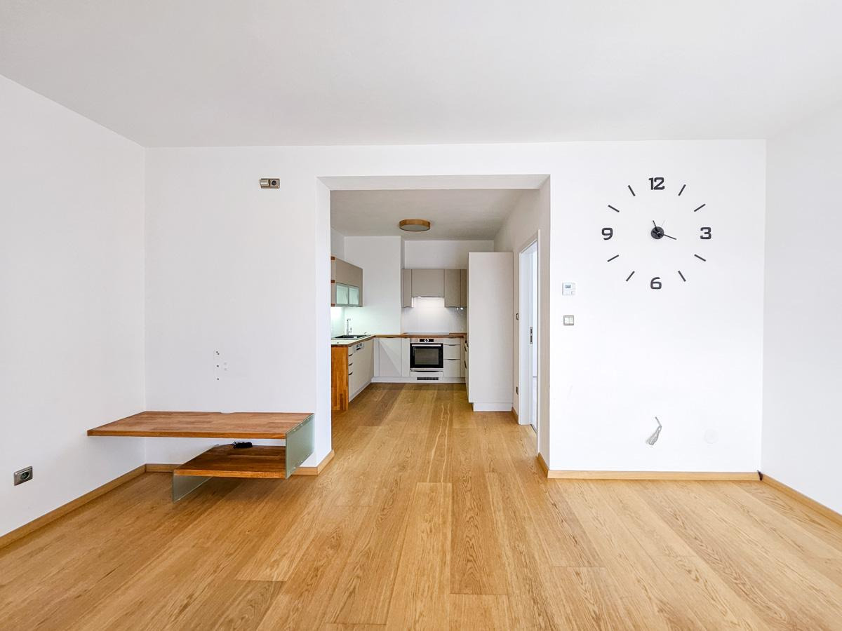 Okna jsou vybavena venkovními žaluziemi. V bytě je vestavěná kuchyňská linka na míru se všemi spotřebiči.