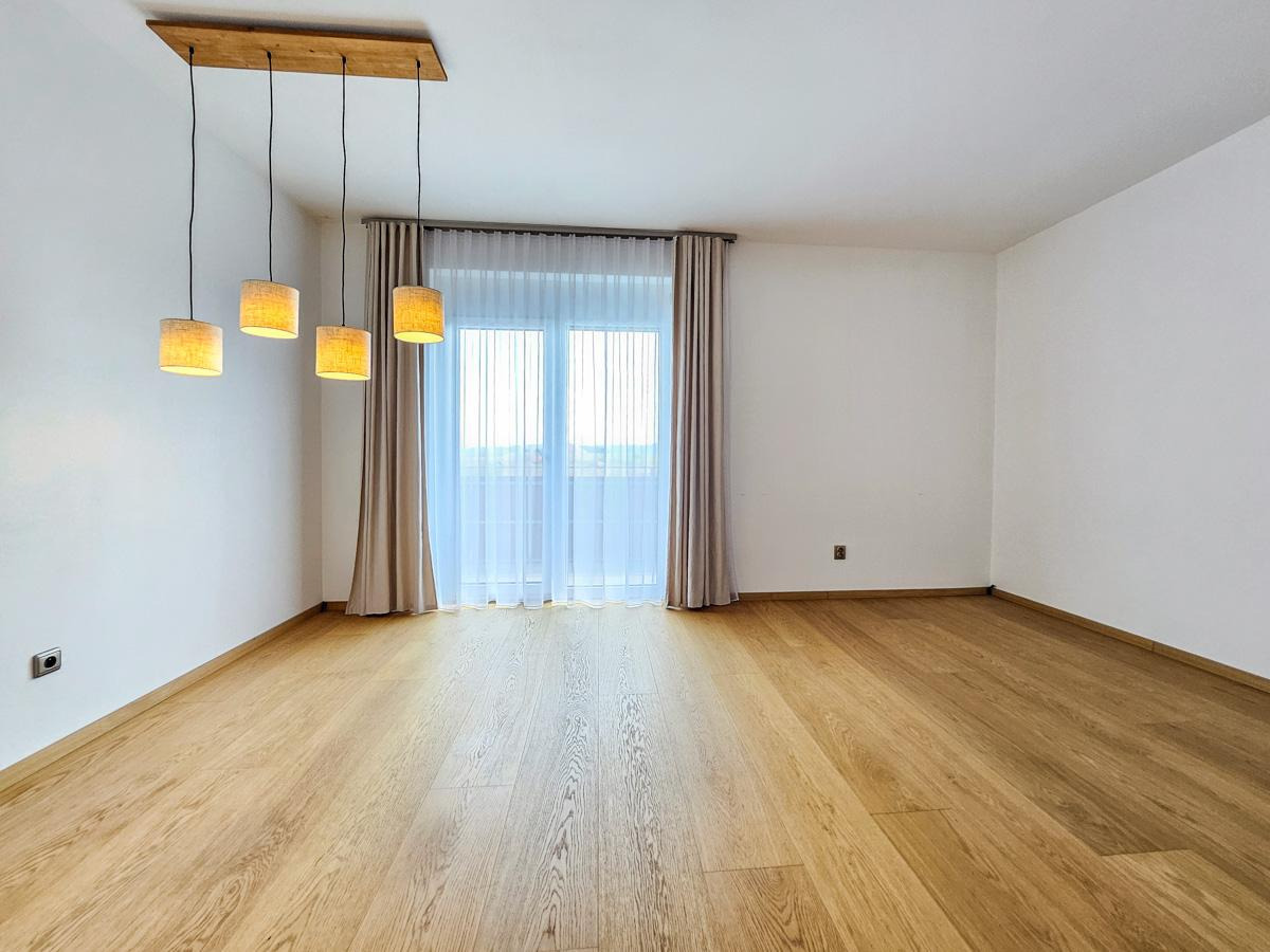 Jeho dispozici tvoří prostorná předsíň s vestavěnými skříněmi, obývací pokoj s kuchyňským koutem a vstupem na terasu orientovanou na severovýchod, dvě samostatné ložnice, koupelna se sprchovým koutem a s WC. Celková plocha bytu vč. terasy zaujímá cca 90m2. K bytu dále náleží velký sklep o celkové ploše cca 7m2. Byt je nezařízený, pouze vestavěný nábytek dle fotografií. V obytných místnostech je položena kvalitní dřevěná podlaha a v ložnicích koberce, v koupelně a na terasách kvalitní dlažba.