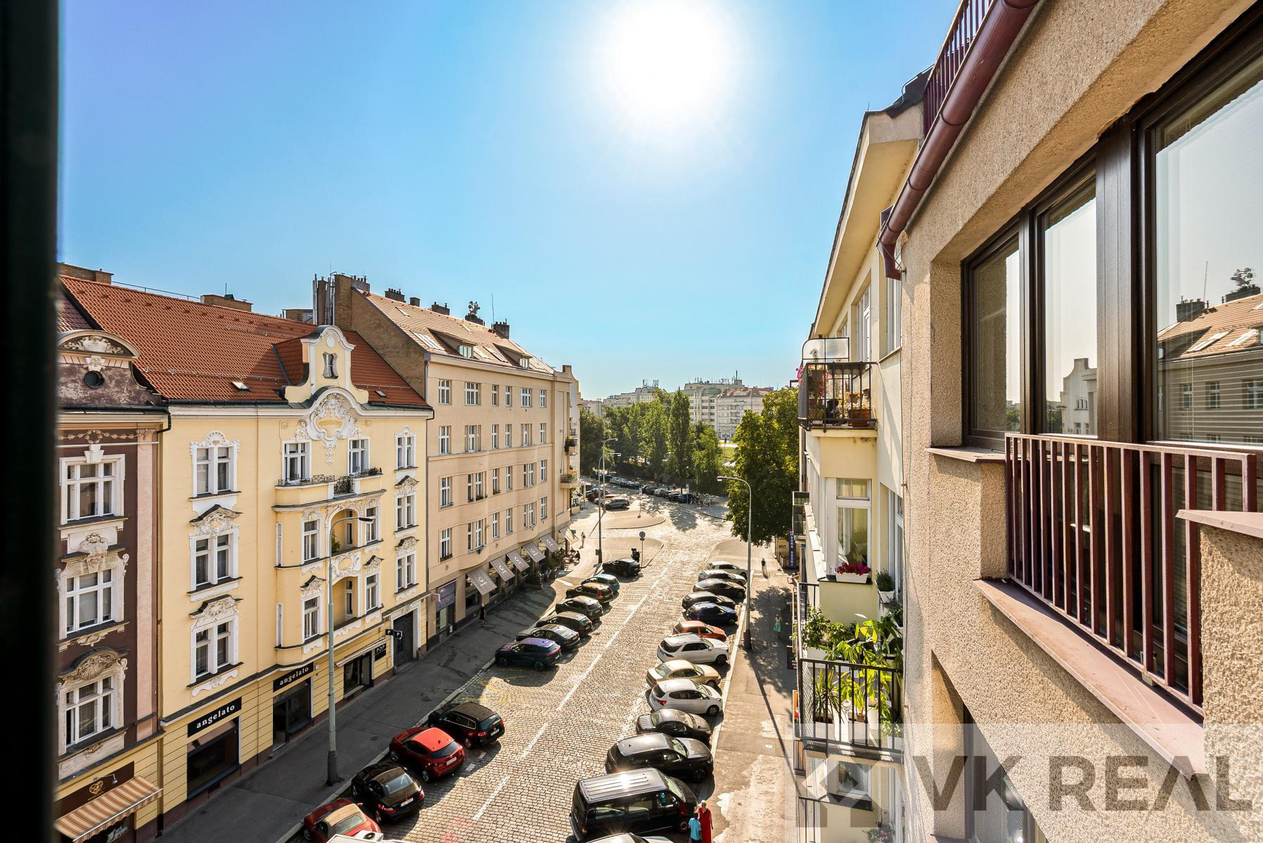 Poloha bytu je výborná v srdci Dejvic, poblíž Vítězného náměstí, s veškerou občanskou vybaveností, obchody, restauracemi a skvělou dopravní dostupností: tramvaje, metro, železnice, tunel Blanka a blízko letiště. V okolí je také park Stromovka a je vidět i na Pražský hrad.