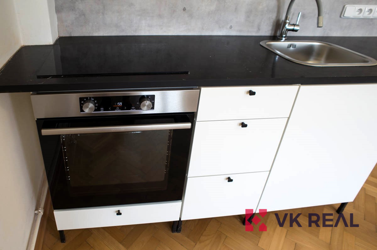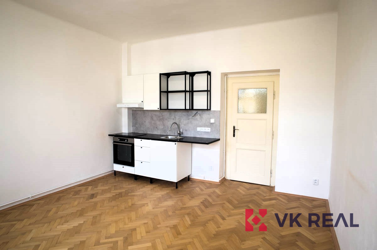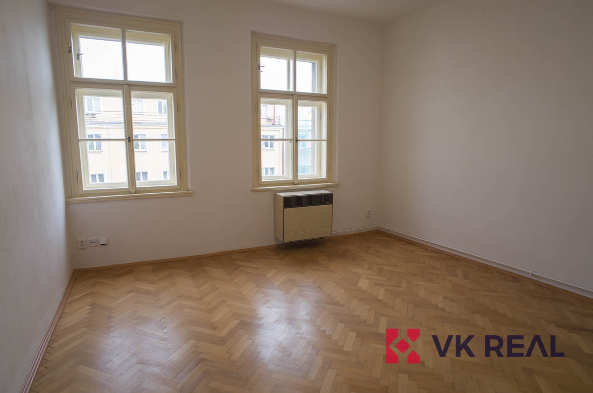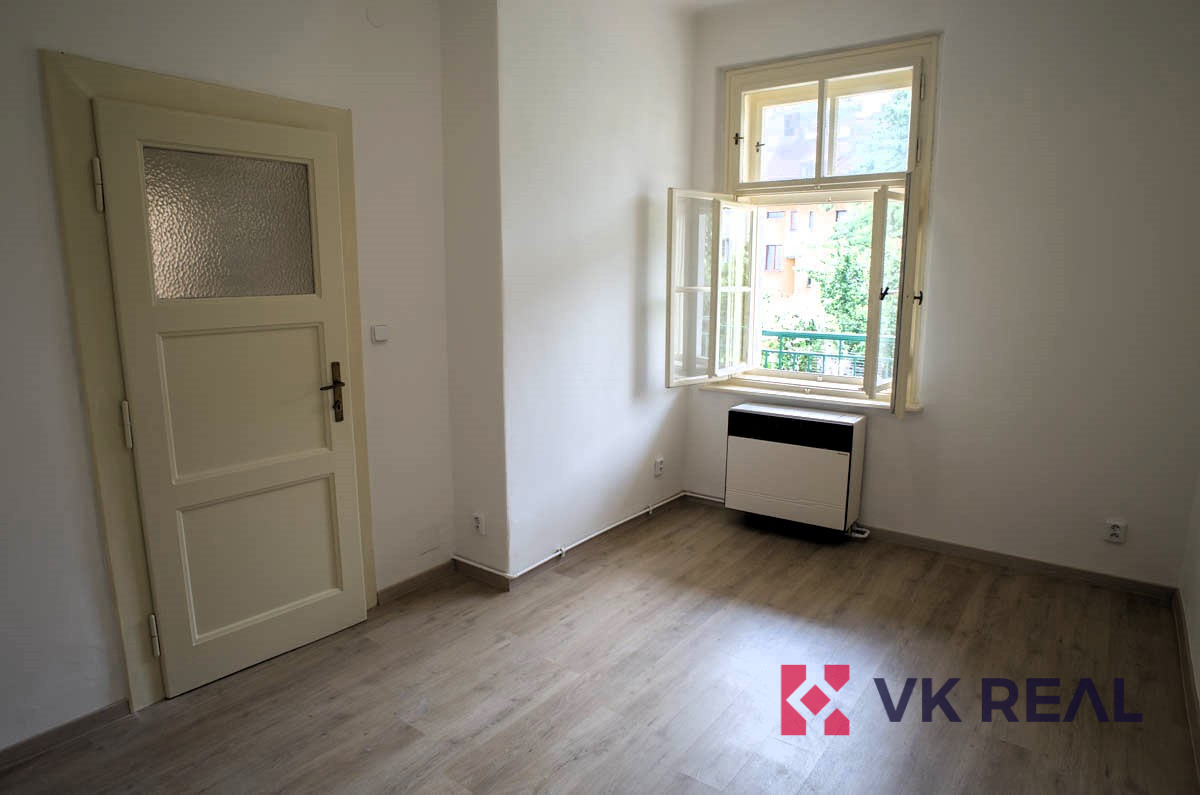Nabízený byt zaujímá dispozici 2+KK (44 m2) a je specifický čtvercovou předsíní 7,3m2, ze které se vstupuje do jednotlivých místností. Do pokoje s kuchyňským koutem 19,5m2 (dřez, digestoř, varná deska, elektrická trouba) s orientací oken na sever do ulice Bělohorská, do pokoje 12,4m2 s orientací oken na jižní stranu do klidného vnitrobloku, do koupelny s WC 4m2 a do komory 0,8m2. Byt prošel před nedávnem rekonstrukcí. Vytápění bytu je zajištěno pomocí lokálních topidel WAW. Ohřev teplé vody elektrickým bojlerem. Díky tomu jsou výdaje na energie pod vlastní kontrolou.