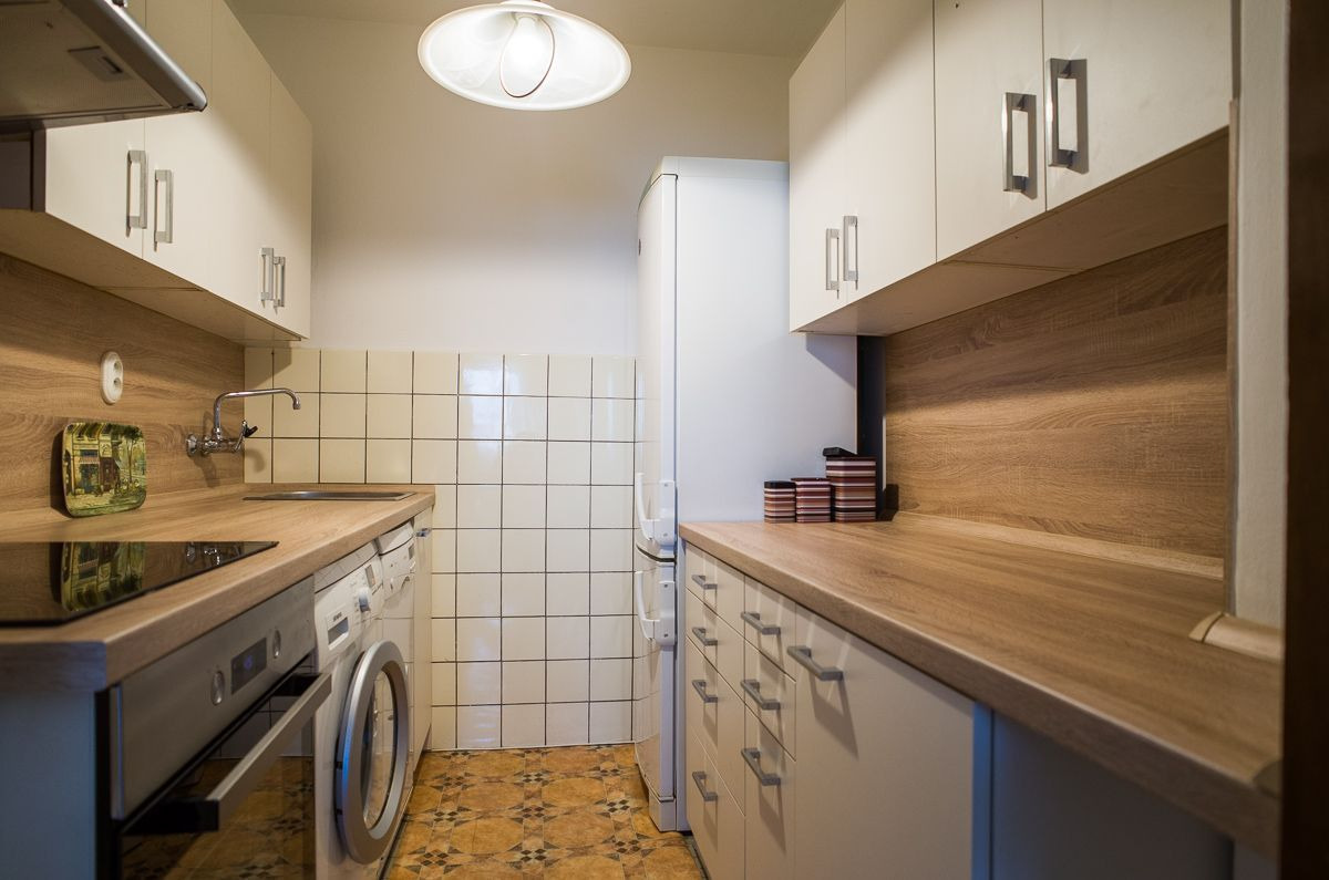 Nová velká kuchyňská linka plně vybavena spotřebiči včetně pračky.